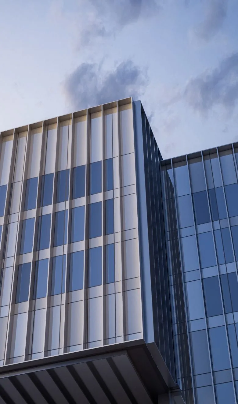 Вертикальные ламели устремляют здание вверх, делая его еще динамичнее.