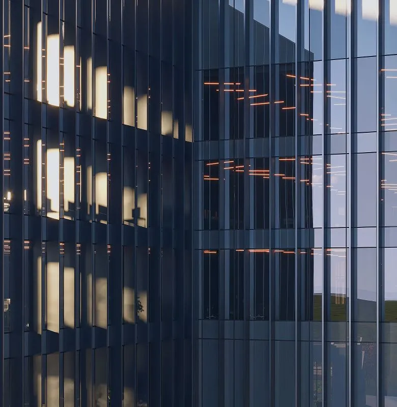 Солнцезащитные стеклопакеты с селективным покрытием обеспечивают эффективную защиту от солнечного света внутри офисных пространств.